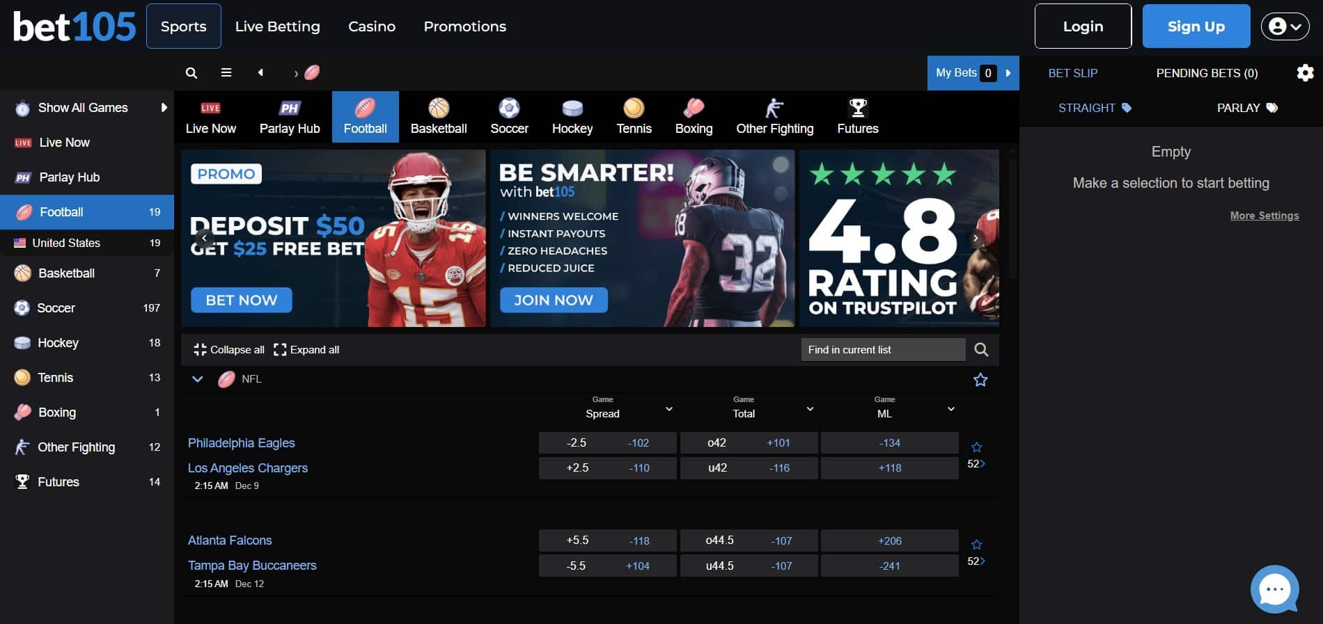 5. Bet105 – Crypto Only Reduced Juice Sportsbook With Extra Casino